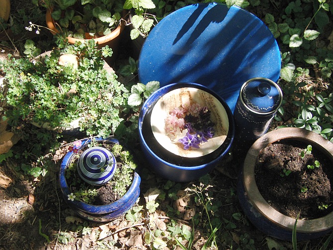 | ... denn es gibt zauberhafte Blicke, die man genießen sollte: eine herrliche Magnolie lugt hinter einem Rhododendron hervor, der inzwischen sicher blüht... |